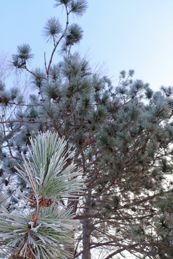 I am fortunate to have a generous number of pine trees along my daily running and dog-walking routes. They have been especially beautiful the past few weeks, as they have been covered with a white coating called rime ice that is formed when water droplets from fog freeze onto a cold surface.